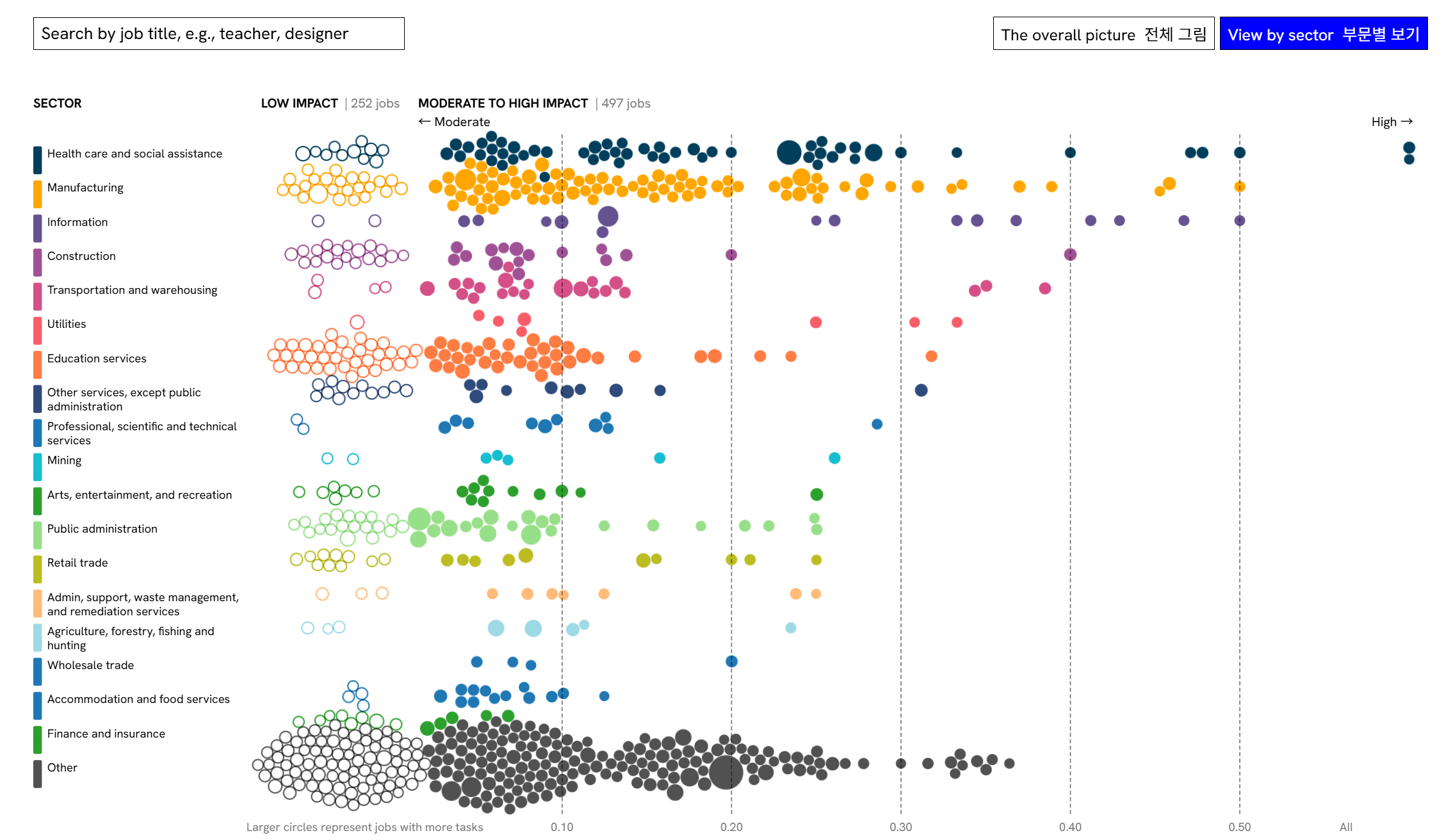 ๋ฐ๋ผ์ ์ค๋์ ์ฌ๋ฌ ์ฐ๊ตฌ๋ฅผ ๊ธฐ๋ฐ์ผ๋ก ํ ๋ฐ์ดํฐ ์๊ฐํ ์ฐจํธ๋ฅผ ํตํด AI ๊ธฐ์ ์ ๋ฐ์ ์ด ์ฐ๋ฆฌ์ ์ง์ ๊ณผ ์ผ์๋ฆฌ์ ๋ฏธ์น๋ ์ํฅ์ ๋ํด ์ดํด๋ณด๊ณ ์ ํฉ๋๋ค. AI์ ๋ฑ์ฅ์ด ๋์๊ฒ๋ ์๊ธฐ์ผ์ง, ๊ธฐํ์ผ์ง ์ง๊ธ ๋ฐ๋ก ์๋์ "๊ธ ์ฝ์ด๋ณด๊ธฐ"๋ฅผ ๋๋ฌ ์์๋ณด์ธ์! ๐