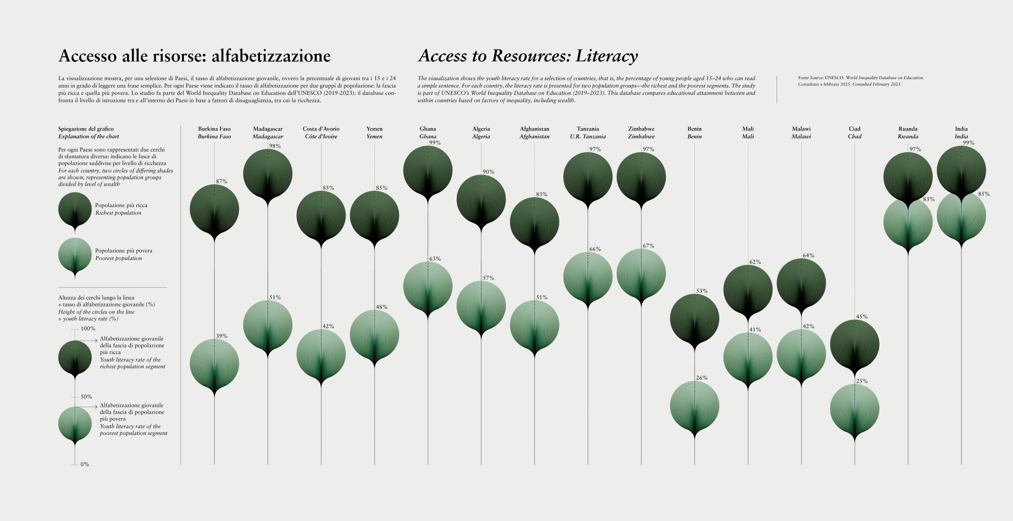 '๊ต์ก ๋ถํ๋ฑ'์ด ์ผ๊ธฐํ๋ ๋ฌธํด๋ ฅ ๊ฒฉ์ฐจ๋ฅผ ๋ฐ์ดํฐ ์ํธ๋ก ์๋ฆ๋ต๊ฒ ํํํ ์ฌ๋ก๋ก ์ค๋ ๋ด์ค๋ ํฐ๋ฅผ ๋ง๋ฌด๋ฆฌํ๋ ค๊ณ ํ๋๋ฐ์! ๋ฐ๋ก ์ ๋ณด ๋์์ด๋ Federica Fragapane๊ฐ UN ์ธ๊ณ ๋ถํ๋ฑ ๋ณด๊ณ ์ ๋ฐ์ดํฐ๋ฅผ ํ์ฉํ์ฌ ์ ์ํ, ๊ต์ก ์์ ์ ๊ทผ ๋ถํ๋ฑ์ ๊ฐ์ง ๊ตญ๊ฐ์ ๊ณ์ธต๋ณ ๋ฌธํด๋ ฅ ์ฐจ์ด์